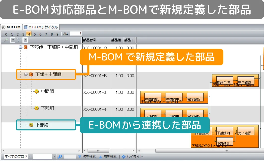 MPPCreatorでは、設計BOM(E-BOM)を取り込み、製造BOM(M-BOM)を簡単に作成・管理できます。