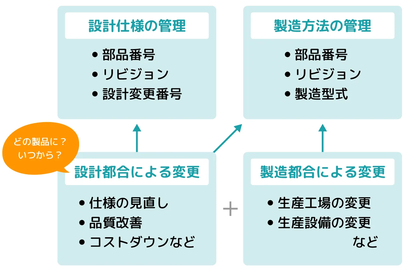 設計部門では、仕様見直し、品質改善、コスト削減といった目的からE-BOMが変更されますが、従来のシステムでは出図された図面や仕様書が製造現場の工程設計に十分に活かされないため 、どの部品や工程が設計変更の影響を受けるのかを正確に把握することが難しく、製造部門への影響が後から判明するという課題がありました 。