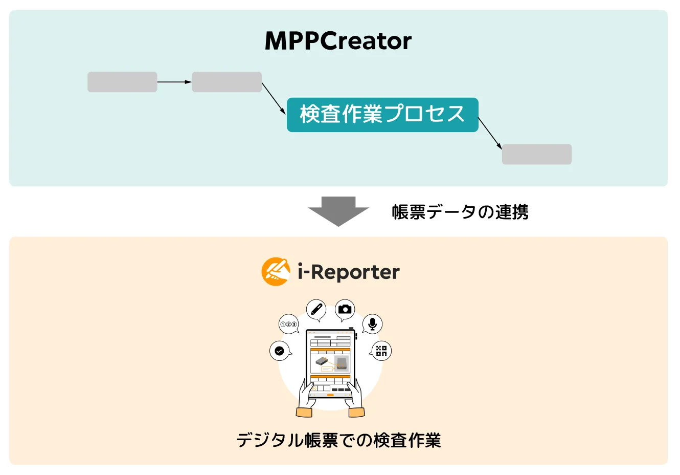 MPPCreatorは、国内シェアNo.1の現場帳票ペーパーレス化ソリューション『i-Reporter』と連携することで、現場帳票の作成・管理を効率化します。さらに、Excelフォーマットを利用した各種帳票の作成にも対応しており、既存の業務フローにスムーズに組み込むことが可能です。